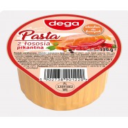 Pyszna pasta z najwyższej jakości łososia wędzonego z olejem rzepakowym, koncentratem pomidorowym, kaszą manną oraz jajkiem. Pikantnie przyprawiona - dla amatorów przekąsek z charakterem. Idealna do kanapek, naleśników i tortilli.