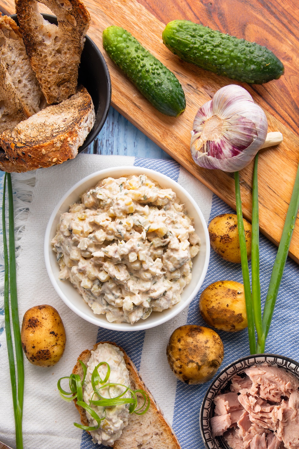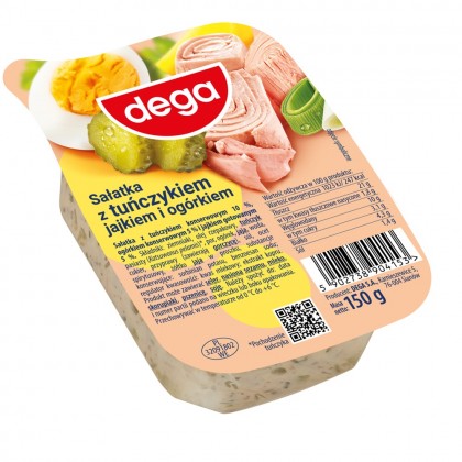 Sałatka na bazie ziemniaczków z polskich upraw z wysokiej jakości konserwowym tuńczykiem, aromatycznym jajkiem i wyrazistym ogórkiem oraz porem. Unikatowa receptura Dega. Idealna propozycja na śniadanie i kolację…możesz też śmiało podać na przyjęciu. Super pasuje do naleśników i chrupkiego pieczywa :)
